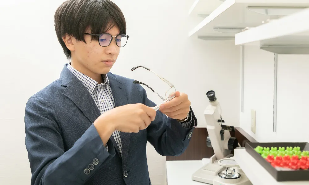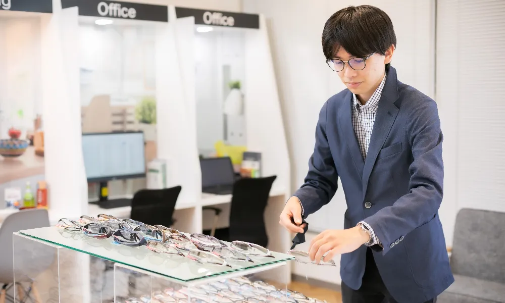 私はまた店舗配属されてから日が浅いのですが、だんだん通勤にもお店での仕事にも慣れてきた実感があります。 研修を受けたあと店舗に配属されてからも店長にいろいろ教えていただいて日々勉強です。 いま担当しているのは主な仕事は眼鏡の販売でフレームもレンズもお客様に説明して提案できるようになりました。 単にモノを売るのではなく、お客様ひとりひとりに合わせた商品を提案するのが仕事ですので、もっと自分を磨いていきたいですね。