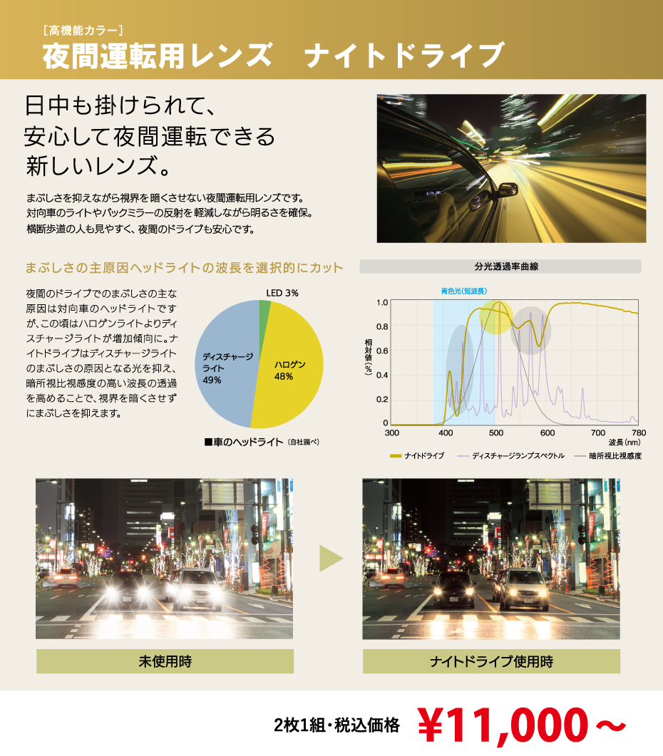 夜間運転用ナイトドライブレンズ